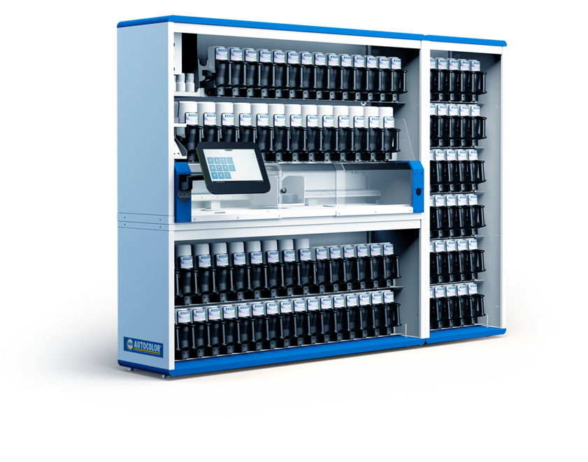 - 13 Positionen in der aktiven Reihe: 10 Mischlacke + 1 Adiditv + 1 Verdünner + 1 freien Platz